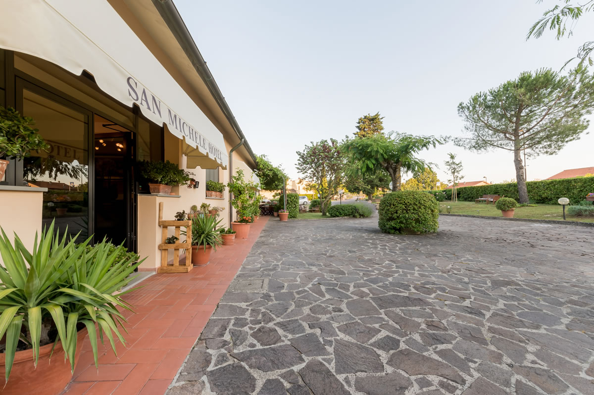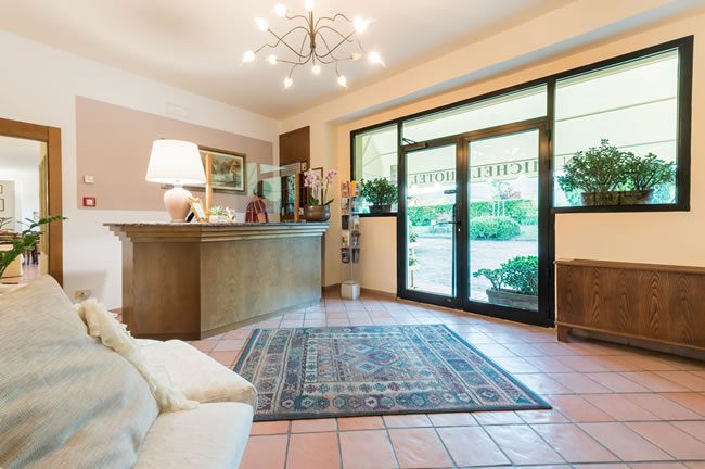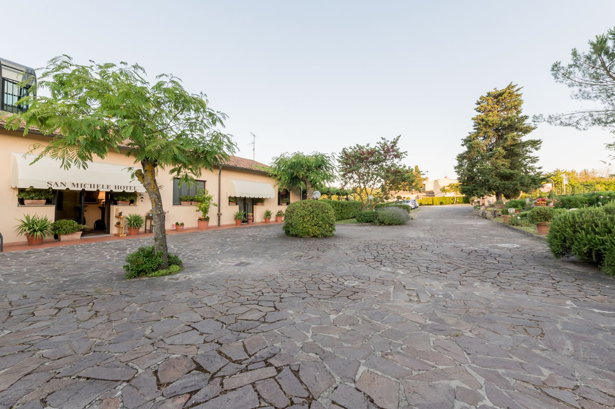 San Michele Hotel is framed in the beautiful landascape of tuscan hills, placed at 1,5 km from the historic centre of San Gimignano, offers a friendly hospitality. Bar, wide car park, swimmingpool, garden, room for disabled people, satellite TV , air conditioning, panormaic view.